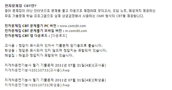 이렇게 기출문제는HWP한글파일로 다운받아 출력해 풀어볼수도있으며 답이 바로 아래에 있어 답을 확인하면서 풀수도 있습니다.
