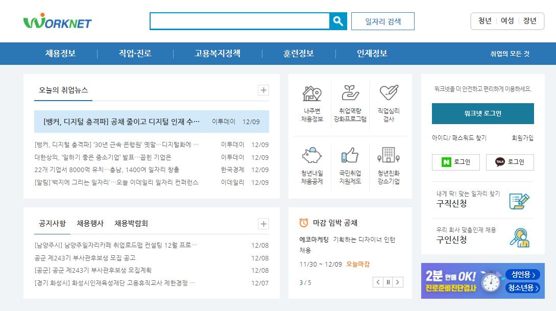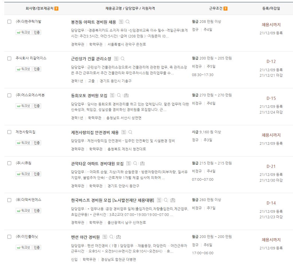 잡코리아나 사람인처럼 구인구직 프리미엄 광고등이 상위에 오지 않고 정부에서 운영하는 워크넷에서는 내가 원하는 경비원 구인구직 정보를 좀더 쉽고 많이 찾아볼수 있다는 장점이 있습니다.