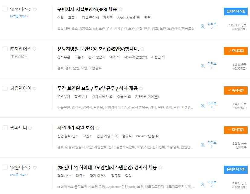 아파트경비원,근린상과 건물 관리소장,시설,빌딩,펜션 경비원등 다양한 구인광고가 실시간으로 나와서 지원하려는 지역을 선택한후 업데이트한 이력서로 경비 구인 공고에 지원해볼수 있습니다.