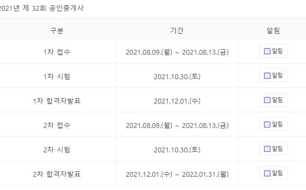 2021년 공인중개사 시험일정