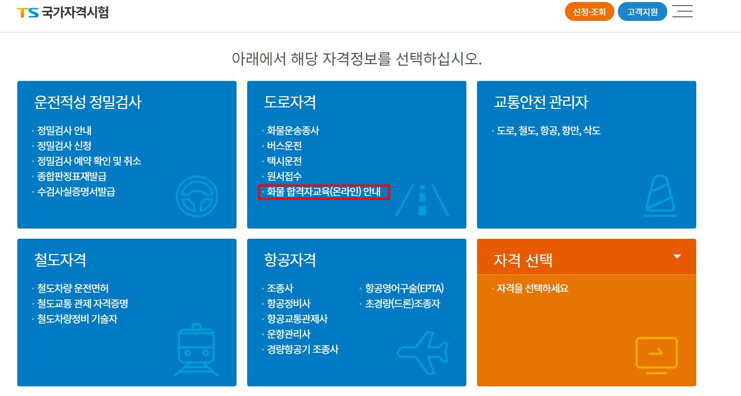 화물운송종사 자격시험 합격자 온라인교육 신청방법 5단계