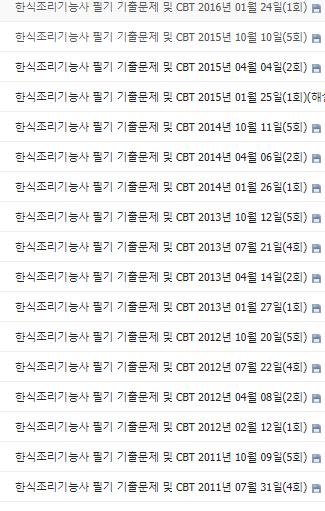 아래 링크사이트에 접속하면 연도별 회차별 한식조리기능사 필기문제를 다운받아서 직접풀어볼수 있어서 유용한 사이트입니다.