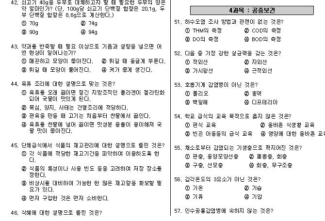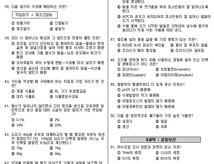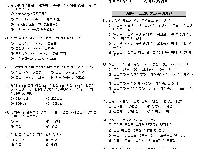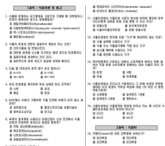 요리실력을 올리고자 한식조리기능사 시험에 관심이가기 시작했습니다. 시험은 기본 공부후 기출문제 위주로 공부하는것도 좋은방법인거 같아서 기출문제들을 찾아보고 풀어보았습니다.
