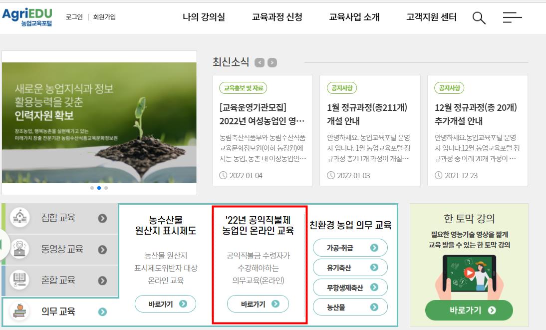 2022년 공익직불제 농업인 온라인교육이 오픈되었습니다.
