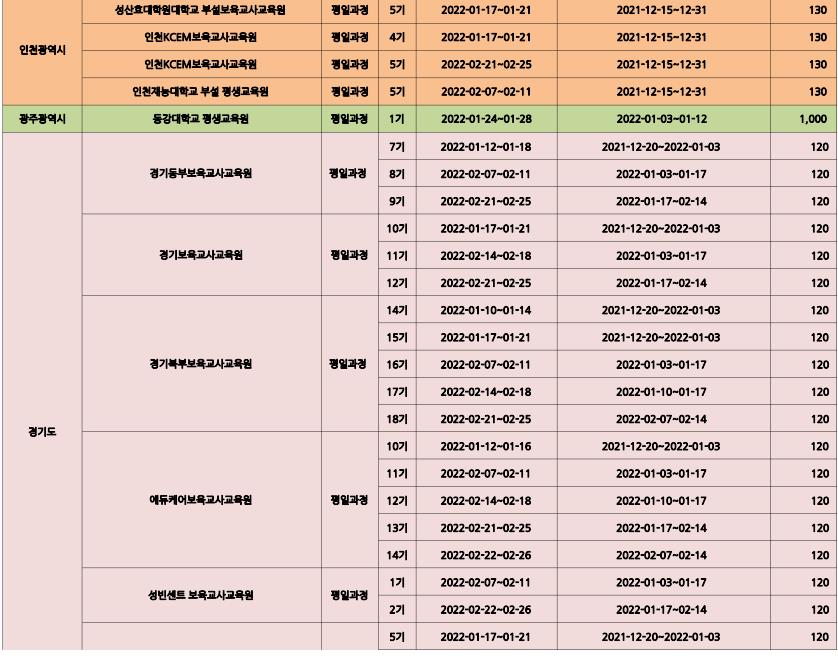 인천과 광주강역시,경기도 장기미종사자 보수교육일정입니다.