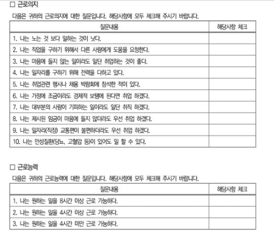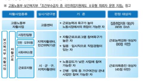 - 근로유지형 : 노동강도가 낮은 환경정비등 사업으로 주민센터 호나경정비,임대아파트환경 정비 등