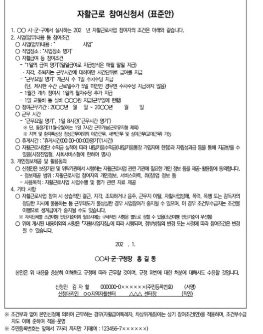 신청한후 지자체에서 재산과 소득을 조사한후 자격요건에 해당이 되면 참가하여 근무가 가능해집니다.