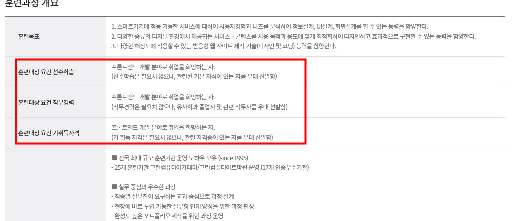 교육과정마다 원하는 자격증과 경력을 필요하는 곳도 있지만 대부분 기본 지식등이 있고 취업을 희망하면 지원을 할수 있기도 합니다.