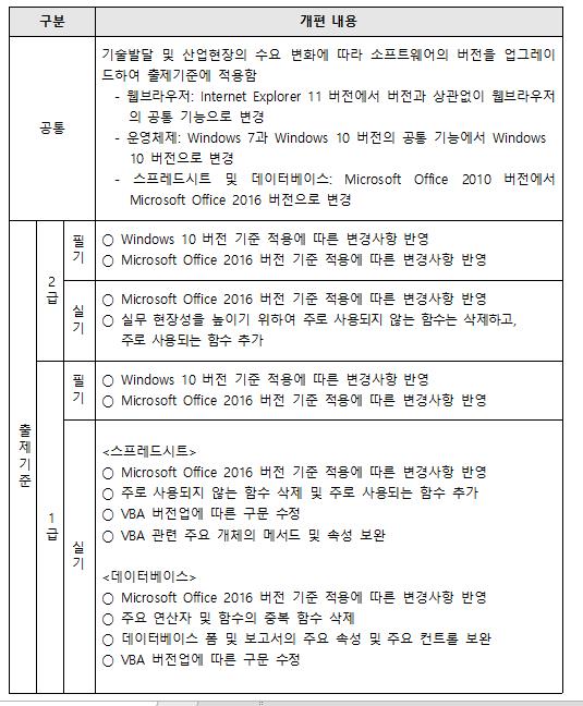 2021년 부터 기존 컴퓨터활용능력시험이 일부 개편되었습니다.