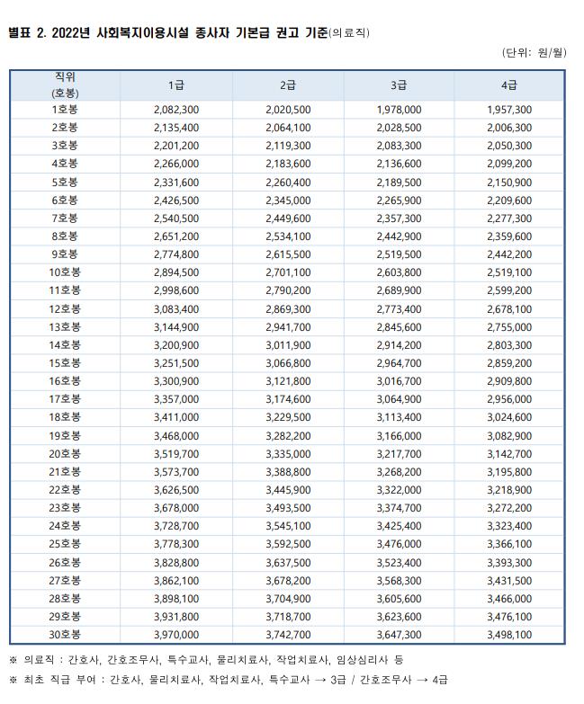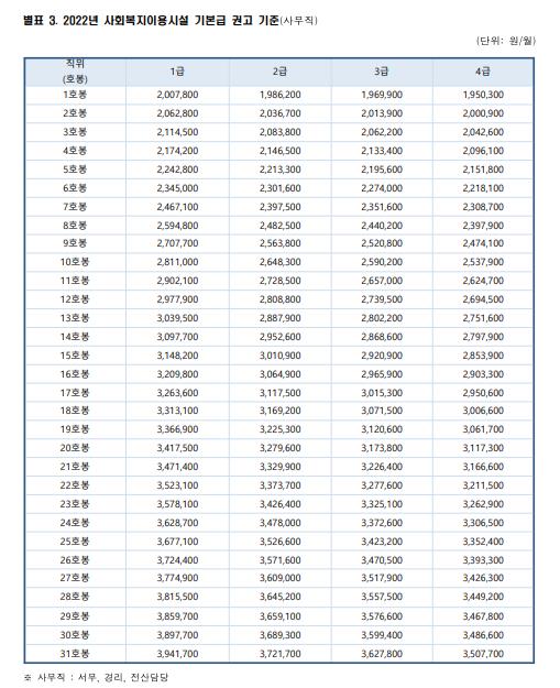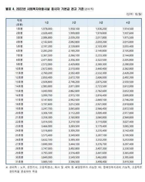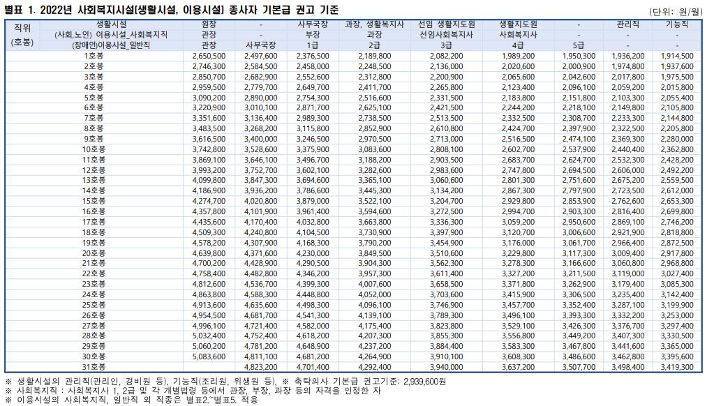 [2022년 사회복지이용시설 종사자 기본급 권고기준]