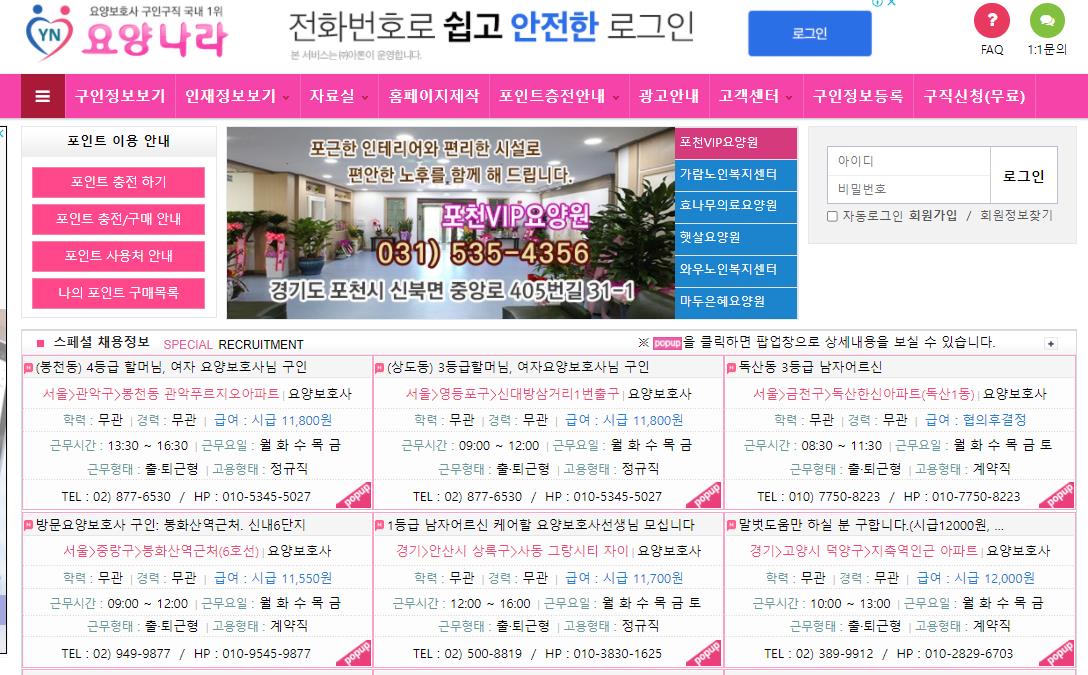 요양보호사 구인구직 정보는 요양나라 홈페이지(yoyangnara.com)에 접속하면 쉽게 찾아볼수 있습니다.