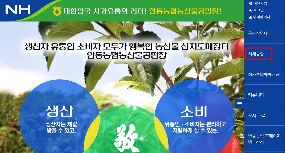 그외 마,땅콩,방울토마토,토마토,만감,수박,대추등 여러 농산물 시세는 안동농협농산물 공판장 홈페이지(adnacf.co.kr)에 접속하시면 매일 시세를 확인하실수 있습니다.