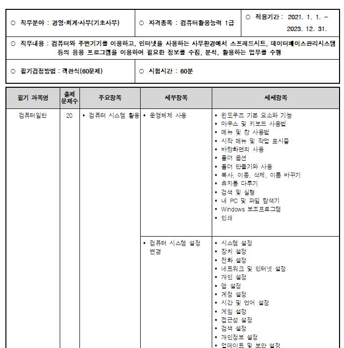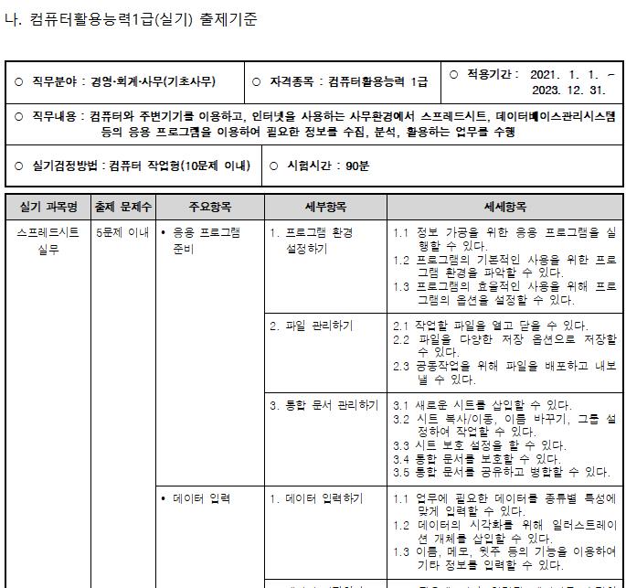 이를 위해 컴퓨터 활용능력 자격시험은 스프레드시트와 데이터베이스인 사무자동화 필수프로그램 활용능력을 평가하는 정부 공인 국가 기술 자격 시험 입니다.