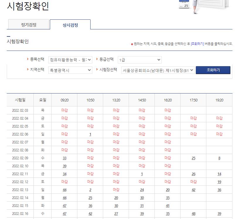 인기 지역은 몇일 이내 시험은 이미 마감된곳도 있어서 빨리 치르고 싶다면 미리 시험장을 접수하는게 좋습니다.