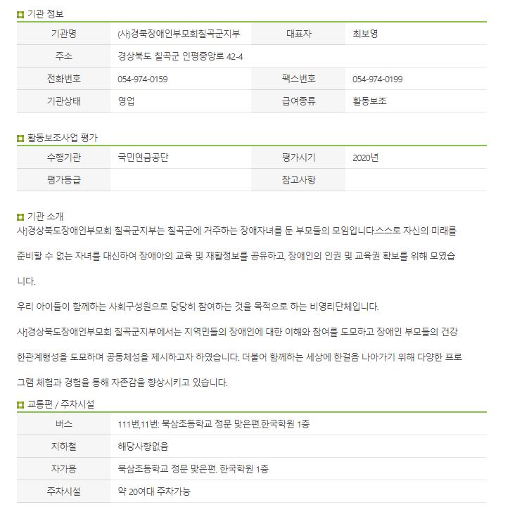 자세하게 기관의 시설 사진과 인원현황,시설현황,홈페이지도 확인 할수 있습니다.