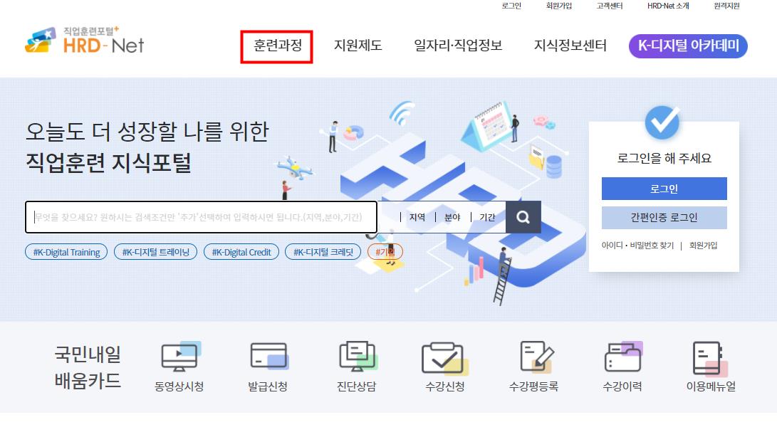 직업훈련포털에서는 국민내일배움카드로 배울수 있는 여러가지 교육과정을 찾아볼수 있습니다.