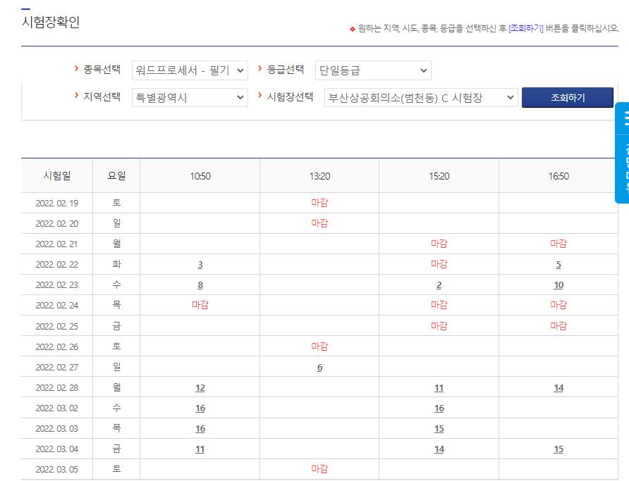 시험 접수전 내가 칠 시험장의 마감현황을 확인해보고 접수 하는게 좋습니다.