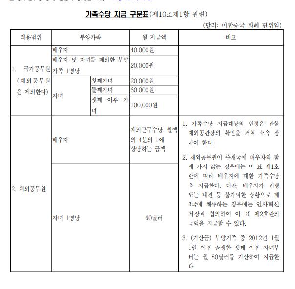 - 주택수당 : 하사 이상 중령이하 군인 및 재외 공무원
