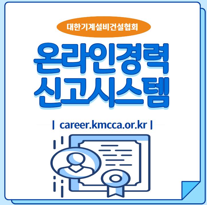 기계설비유지관리자 선임과 경력신고등을 위한 온라인경력신고시스템 홈페이지(career.kmcca.or.kr)이 오픈되었습니다.