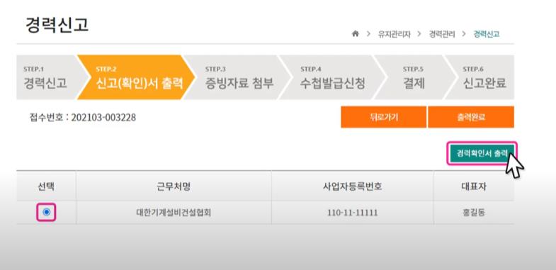 회원가입과 로그인후 경력확인서출력이 가능하며 경력신고를 실시간으로 업데이트 할수 있습니다.
