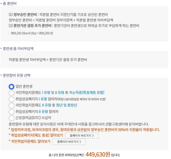 자비부담액을 통해 내가 속해 있는 훈련참여유형으로 자비부담액을 찾아볼수 있습니다.