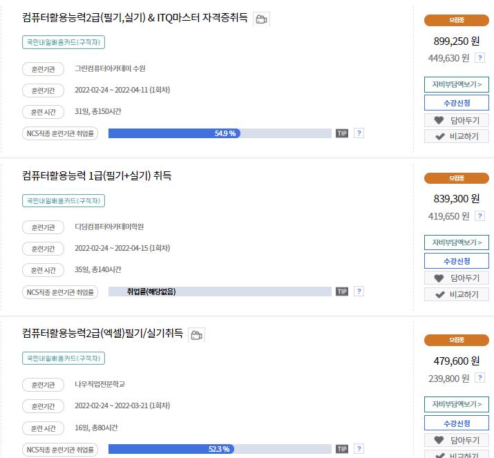 국비지원은 보통 내일배움카드를 발급받을수 있는 재직자나 실업자라면 누구나 적은 비용으로 교육을 들을수 있습니다.