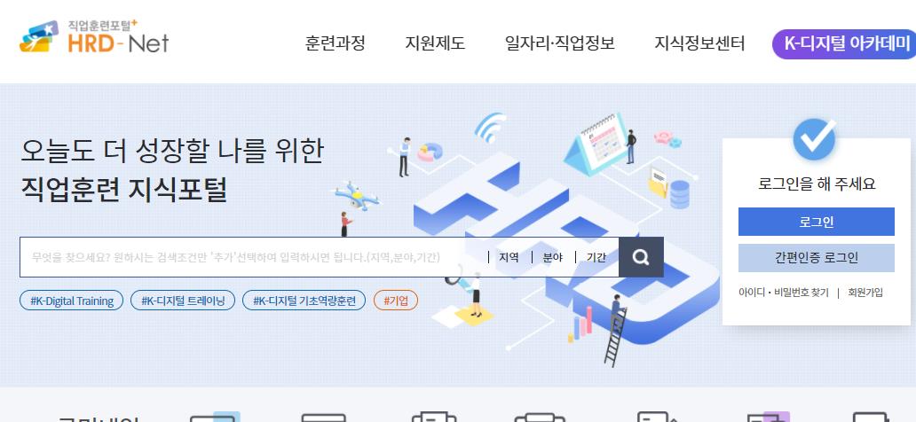 국비지원이 되는 컴퓨터학원을 찾아보려면 우선 직업훈련포털 홈페이지(hrd.go.kr)에서 교육과정을 찾아볼수 있습니다.