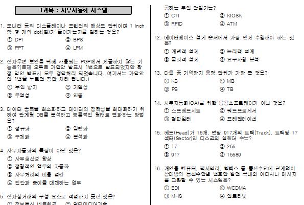 사무자동화산업기사 필기 기출문제 한글버전과 pdf파일 버전입니다.