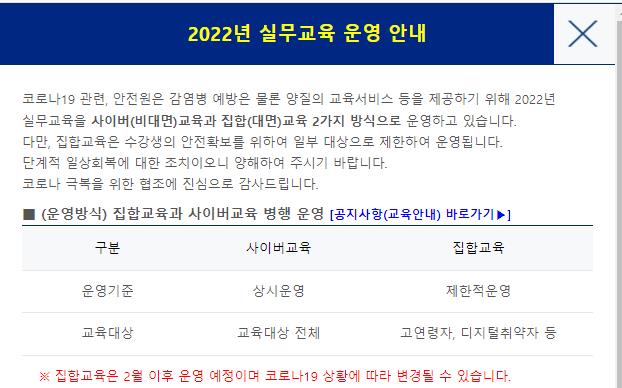 2022년 실무교육은 온라인 사이버 교육과 대면 집합교육 2가지 방식으로 운영됩니다.