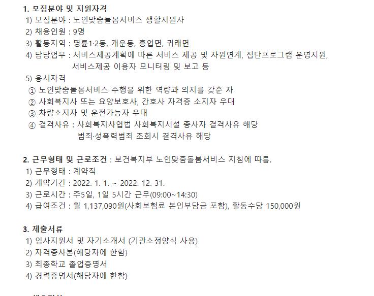 생활지원사 모집공고 확인