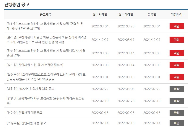 코스트코 직원 채용 정보는 코스트코채용홈페이지(recruit.costco.co.kr)에서 쉽게 찾아볼수 있습니다.
