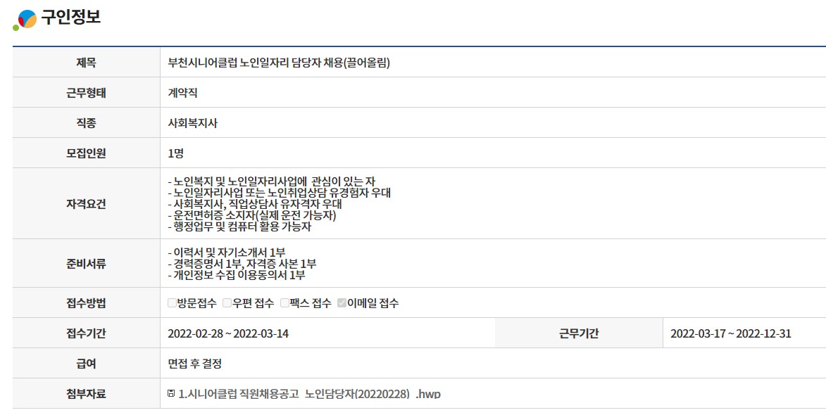 사회복지사나 요리강사 취사원,노인일자리 담당,생활재활교사등 다양한 복지분야의 일자리 정보를 볼수 있습니다.
