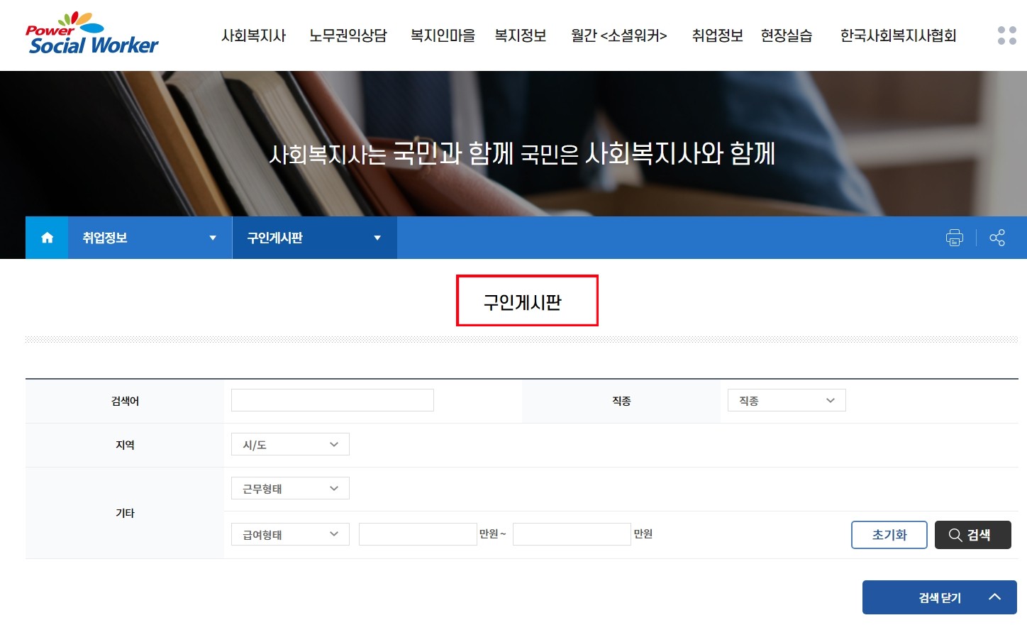 사회복지사 구인구직 사이트 1. 사회복지사협회