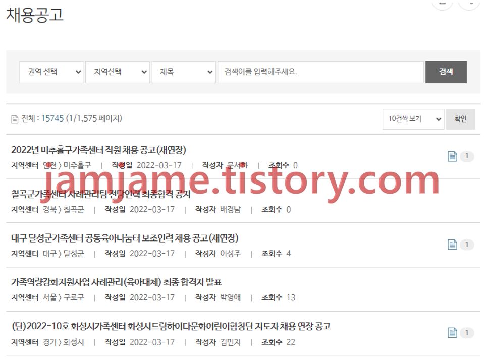 채용공고에서 가족센터나 돌봄센터,육아대체등 다양한 공고를 볼수 있습니다.