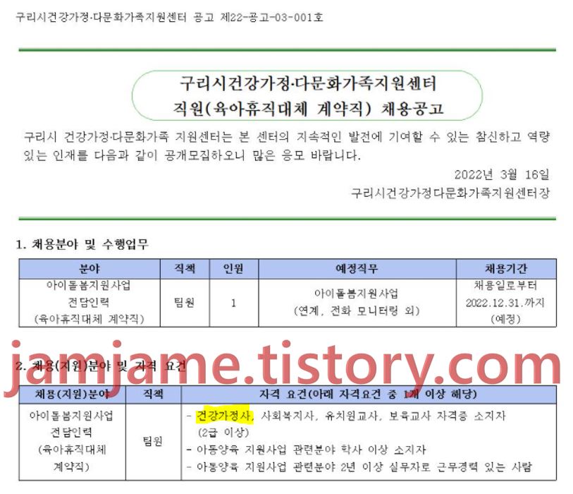 이상으로 건강가정사 자격요건과 하는일 자격증 취득방법 급여 채용정보등에 대해 알아보았습니다.