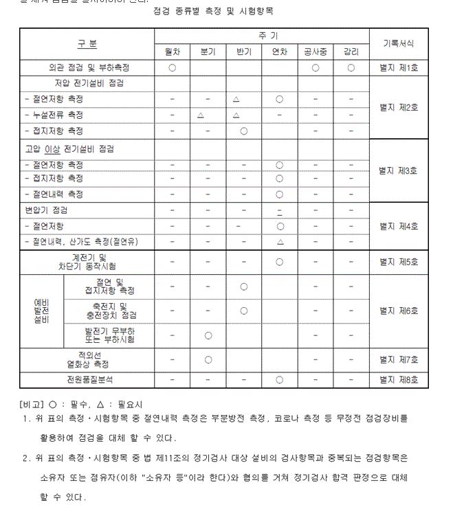 또한 전기안전관리자는 전기설비 용량에 따라 월 점검횟수와,점검간격에 따라 점검을 해야합니다.