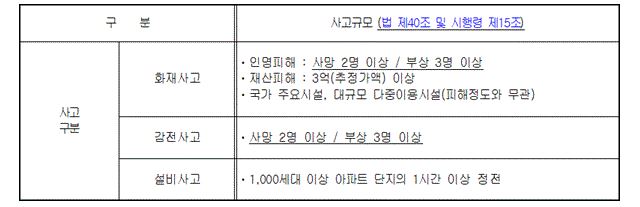 또한 중대 사고에 따라 한국전기안전공사에 알려야 합니다.