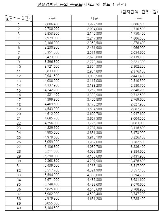 [전문경력관등 봉급표]