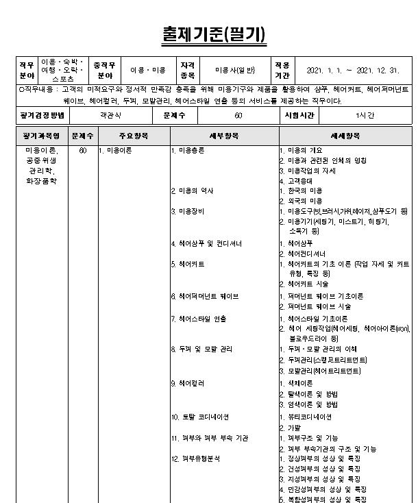 미용사 자격증 필기시험 기출문제(실기 일반 난이도 시험일정 비용)