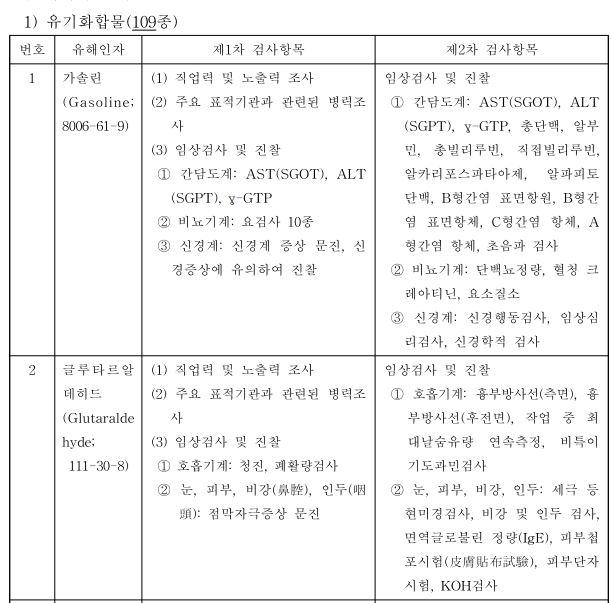 - 화학적인자(벤젠,석면,톨루엔 등 163종)