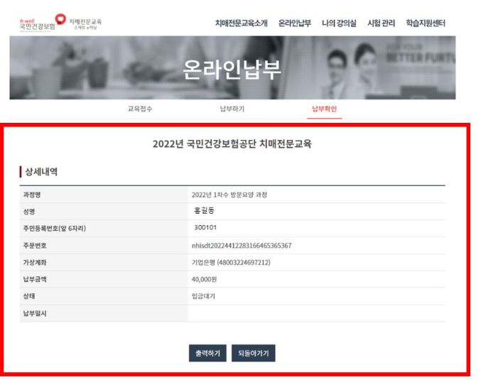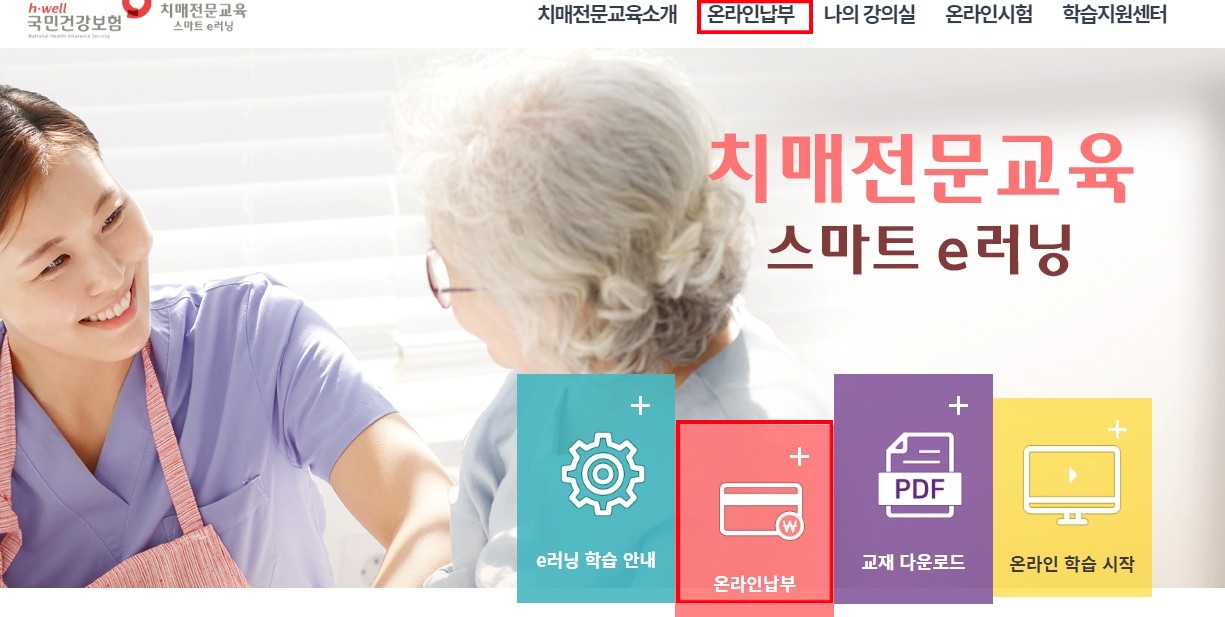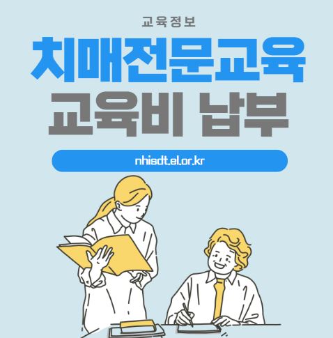 치매전문교육 교육비 납부는 치매전문교육 스마트e러닝 홈페이지(nhisdt.el.or.kr)에서 간단하게 납부 할수 있습니다.