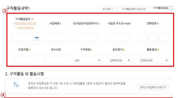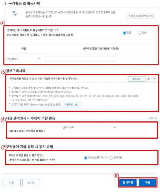 - 워크넷을 통하여 이메일 입사지원을 4회(120일 이하 수급자), 6회(150일 이상 수급자)이상하는경우