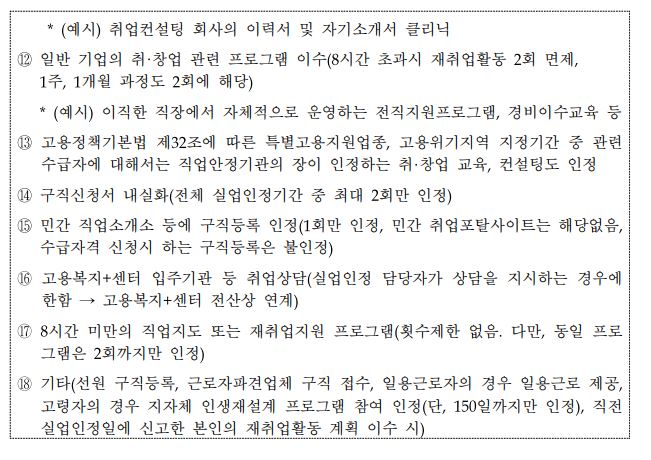 아래 사항은 재취업 활동으로 인정이 안됩니다.
