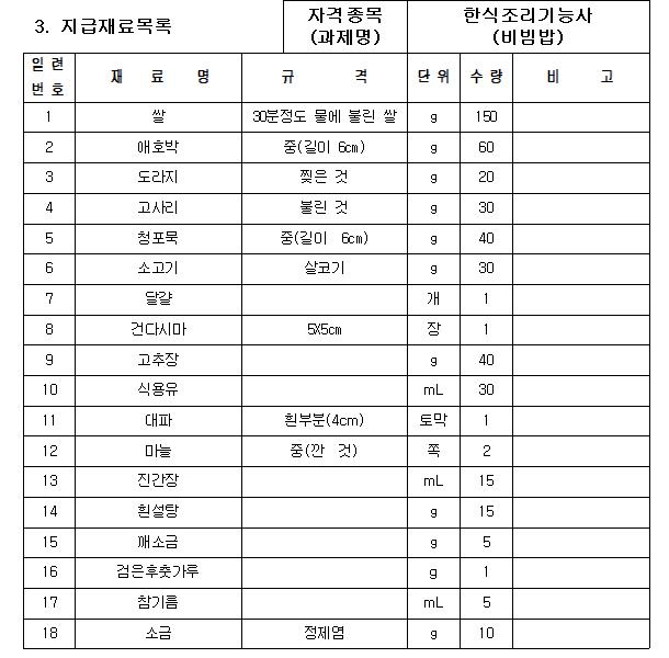 더 많은 한식조리기능사 실기시험문제는 아래 첨부파일을 다운받으셔서 활용하시면 됩니다.