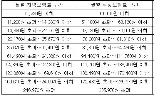 | 소득 10분위 | 584만원 | 235,970원 초과 | 246,970원 초과 |