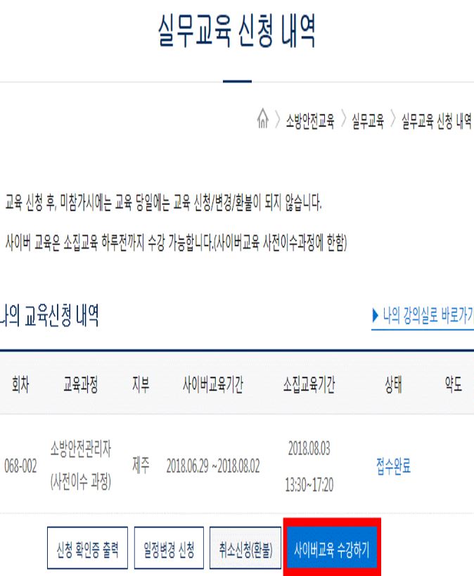 소방안전관리자 실무교육 사이버교육 신청 일정(온라인 보수교육 이수) 바로가기