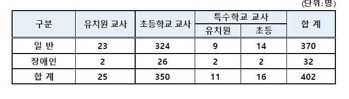 경기도 2023년 유치원교사 임용 티오입니다. 25명 이 예정되어있습니다.