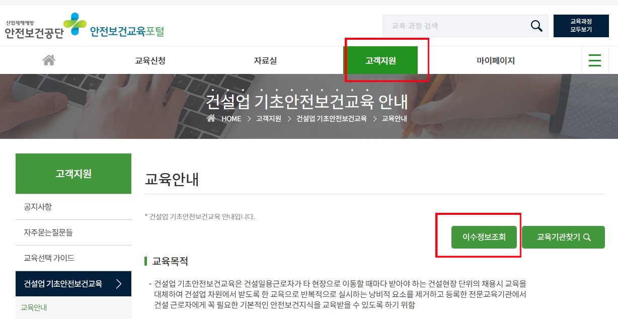 건설업 기초안전보건교육 이수 확인은 안전보건교육 포털에서 본인 확인을 통해 확인 할 수 있습니다.
