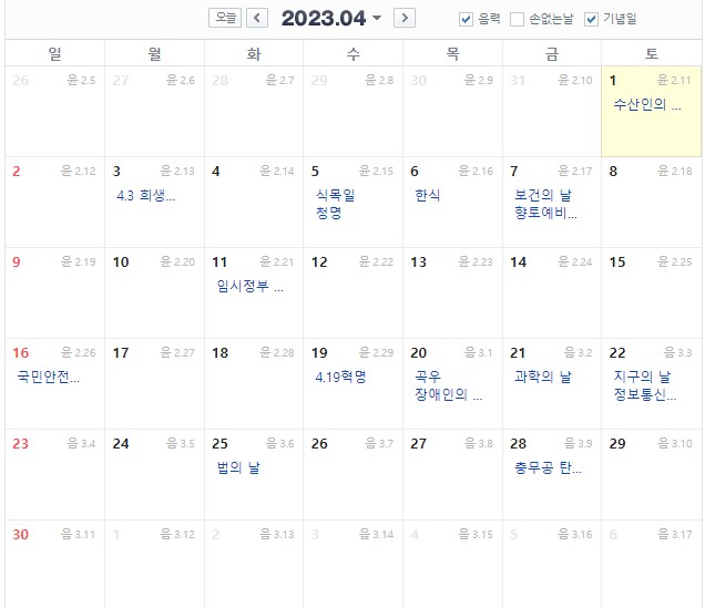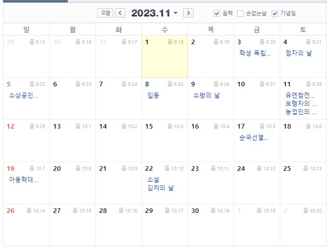 2023년 달력 법정공휴일,음력 24절기 정보 바로가기