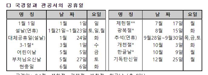 대체공휴일 확대(광복절,개천절,성탄절)